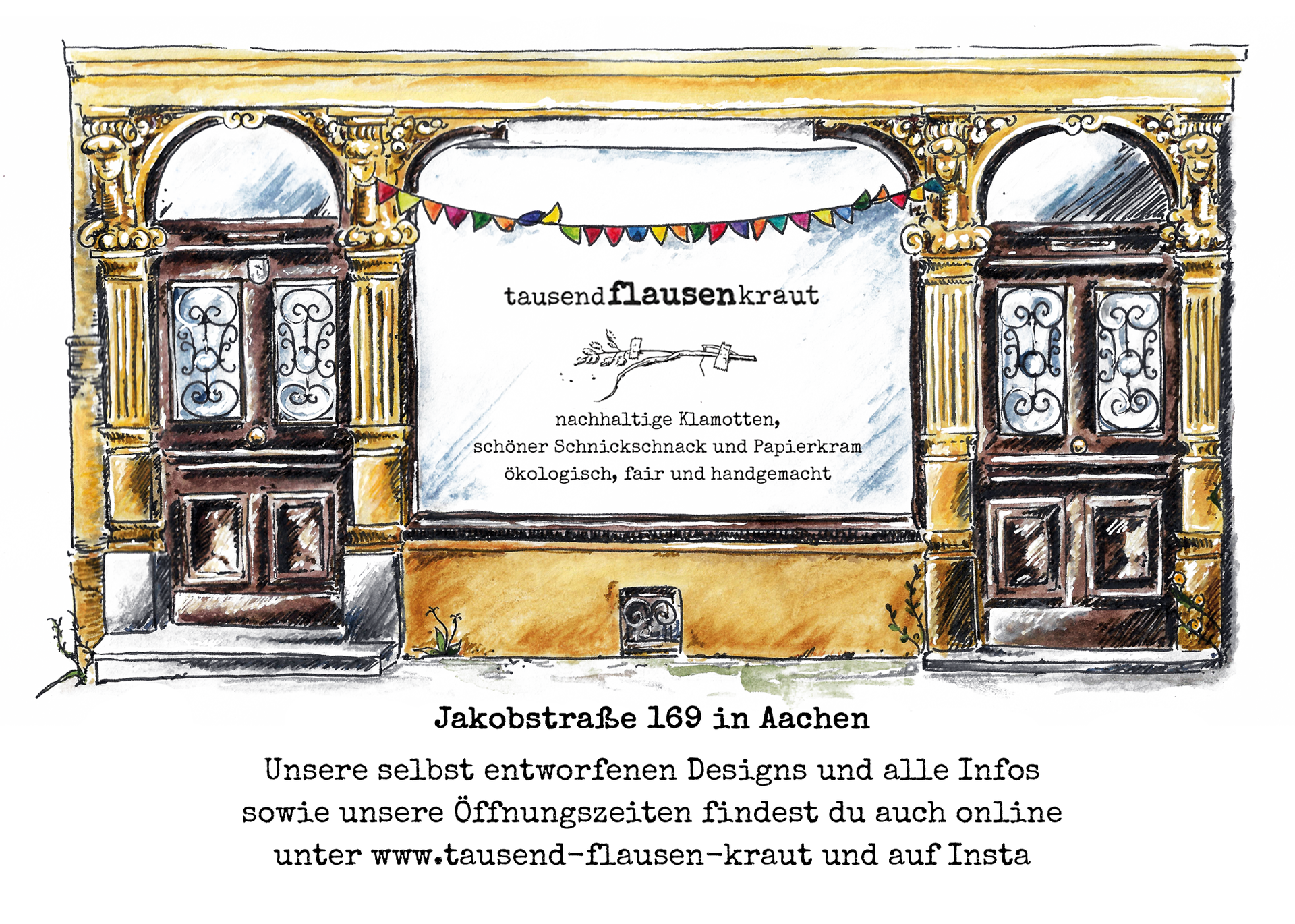 Bei uns sind alle Motive handgezeichnet und per Hand mit viel Liebe auf fair und ökologisch produzierte Textilien gedruckt.